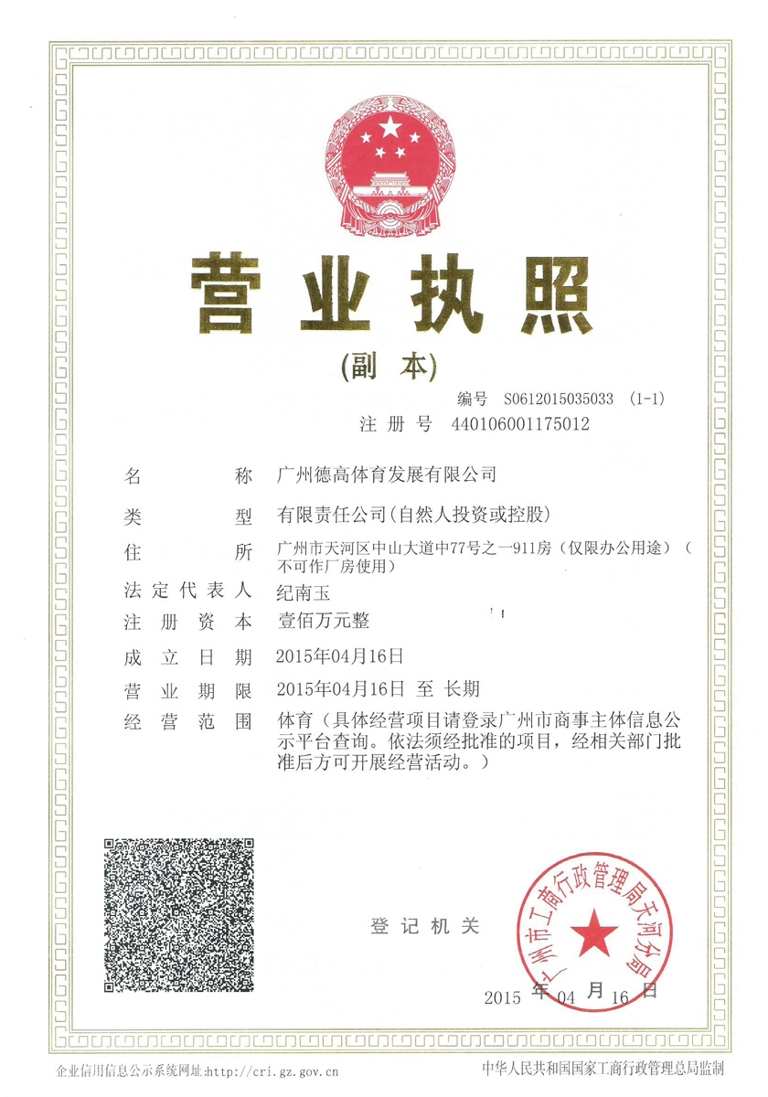 版权所有 Copyright(C)2015 广州德高体育发展有限公司